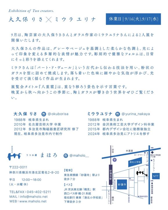 大久保りさ・ミウラユリナ 2人展『八重霞』、初日からご来展くださった皆さまに心より御礼申し上げます。
