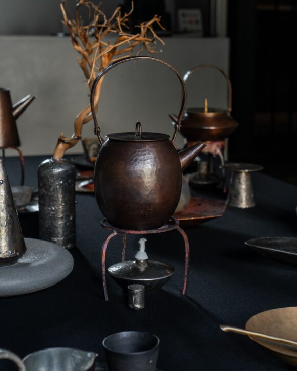 銅、真鍮、錫、鉄——それぞれの素材が持つ特性を見極めながら、金属の質感を引き出していく姿勢は一貫して変わりません。