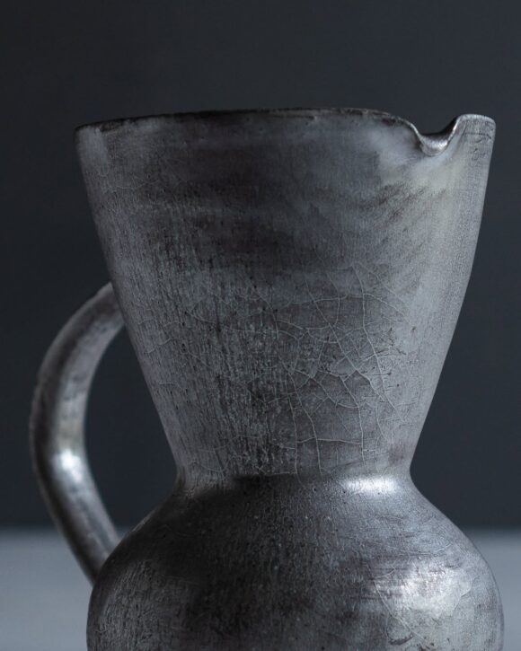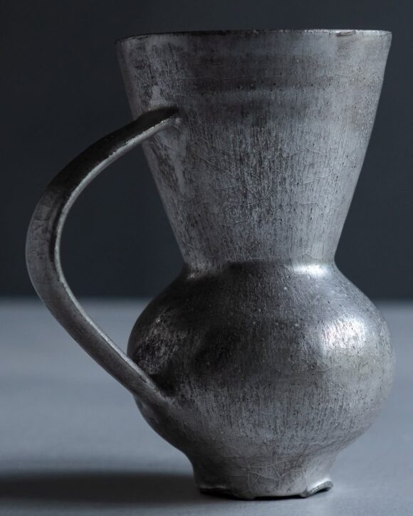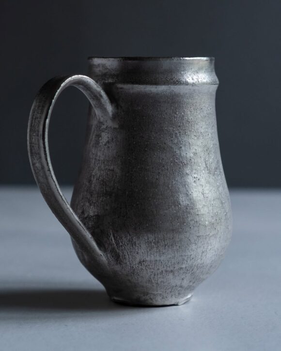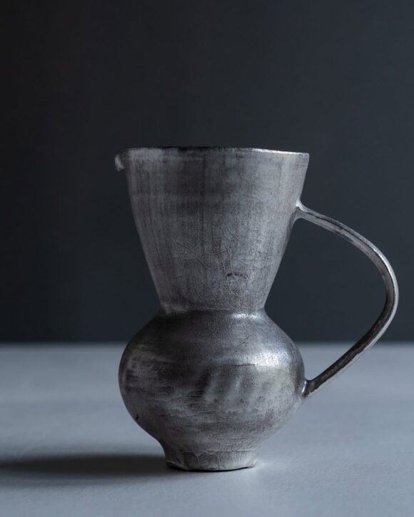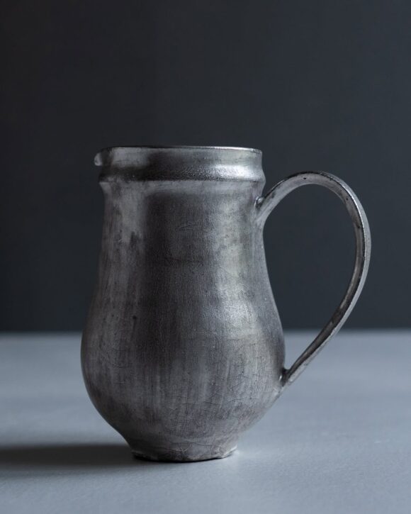 写真は陶芸家・塚本友太さんによる銀彩のピッチャー。