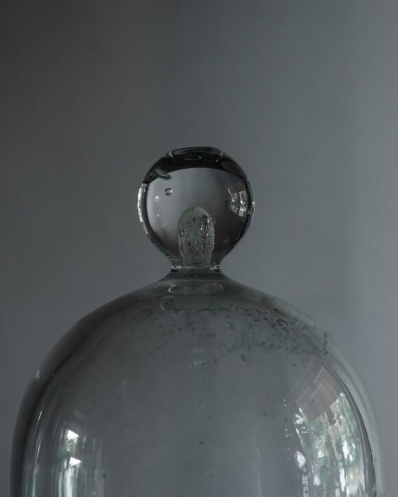 すっと立ち上がる透明なドームは、内部にランダムな気泡を含み、景色を閉じ込めたような美しさがあります。