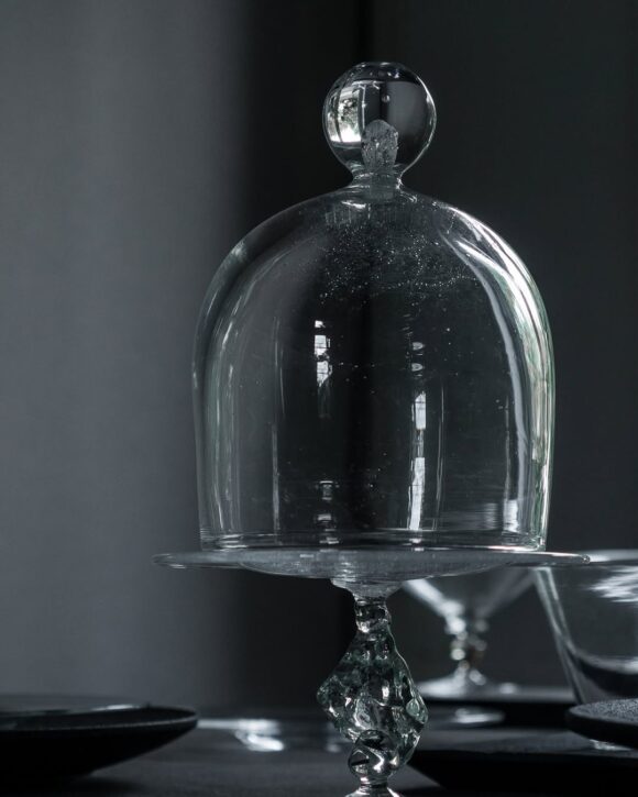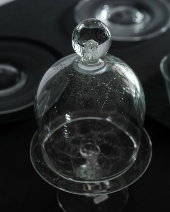 すっと立ち上がる透明なドームは、内部にランダムな気泡を含み、景色を閉じ込めたような美しさがあります。