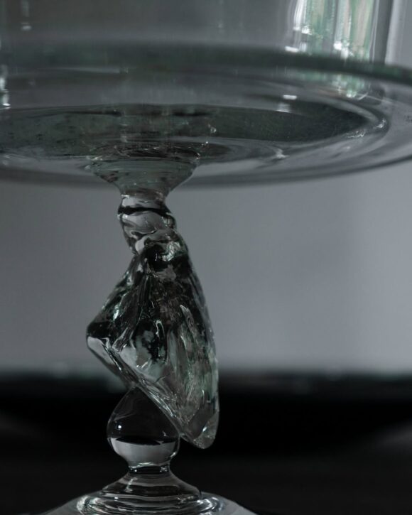 台座の部分には力強いガラスの塊があり、澄んだガラスのきらめきが空間を引き締めます。