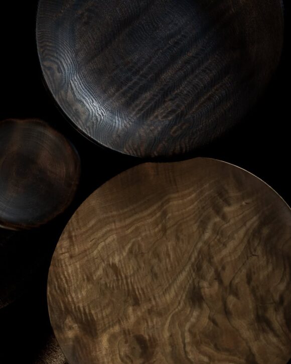 こだわり抜いた木目の木地を挽き、鉄媒染を施したものになります。