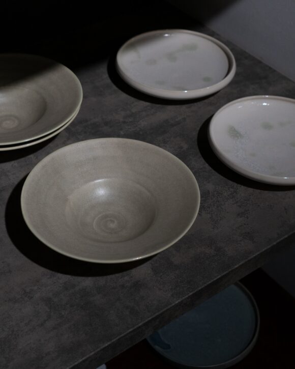 陶・木・ガラスが自然に混ざり合うような、静かな組み合わせになりました。