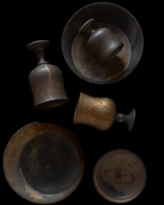 吉田さんの作品は、古代の祭器を思わせる造形と、 深みのあるブロンズ釉による重厚な質感が魅力です。 金属のような光沢の中に、長い時間を閉じ込めたような静けさが漂います。