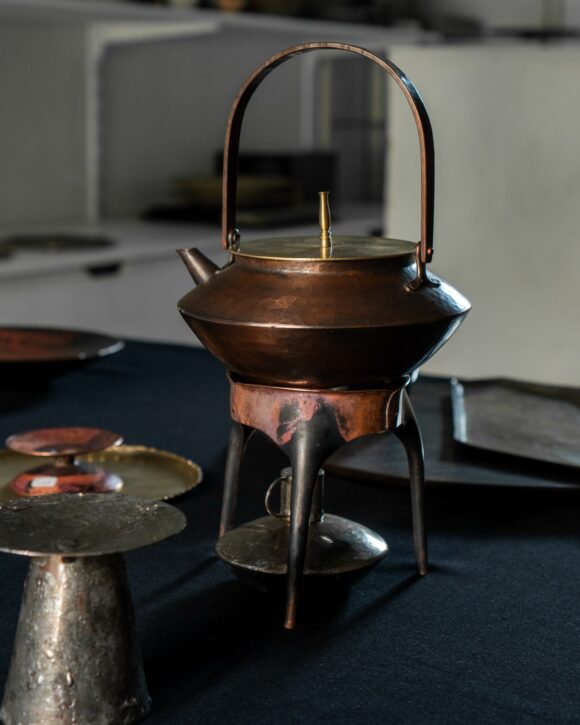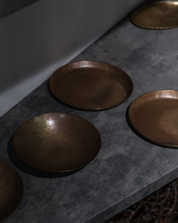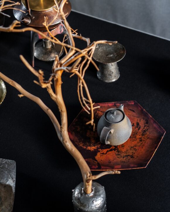 金工作家の個展は弊店でも初めてですが、藤田さんは銅・真鍮・錫・酸化銅など様々な色味と表情があるので、空間にも彩りがあります。