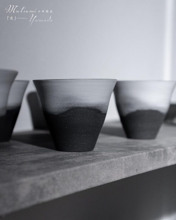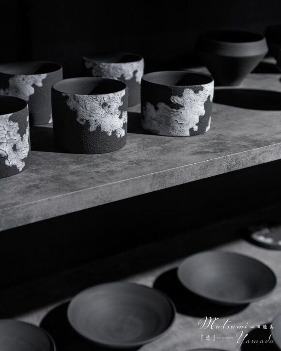 珠洲の黒に磁器土の白化粧を薄く施したシリーズは個人的にとても好みでした。