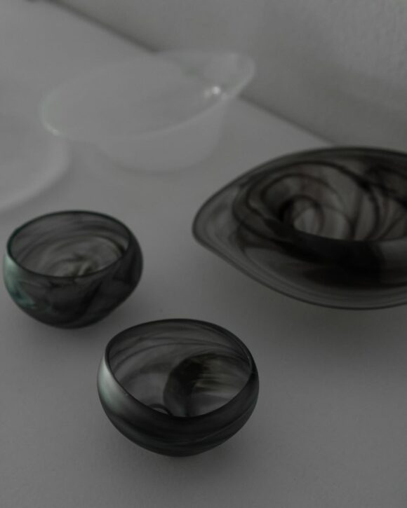 マーブル模様のモノトーンガラスが、凛とした静けさと柔らかな温もりを同時に感じさせます。