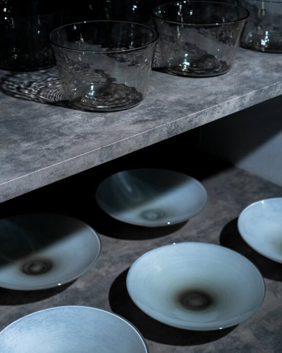 ガラスの個展ではかなりボリュームがあり、形や表情の違いをゆっくりと見比べていただけます。