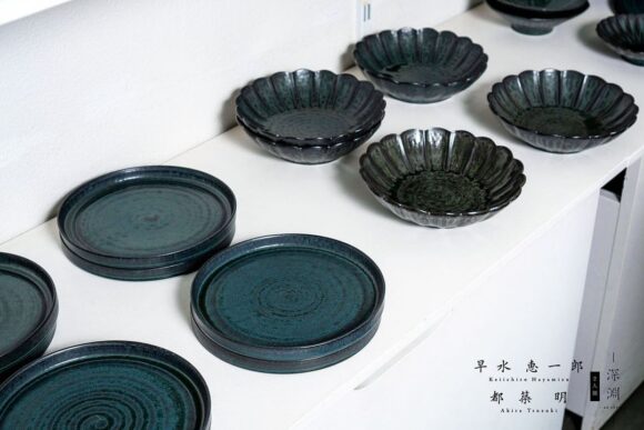 早水さんの折敷や盛器の仕上げは多彩です。
