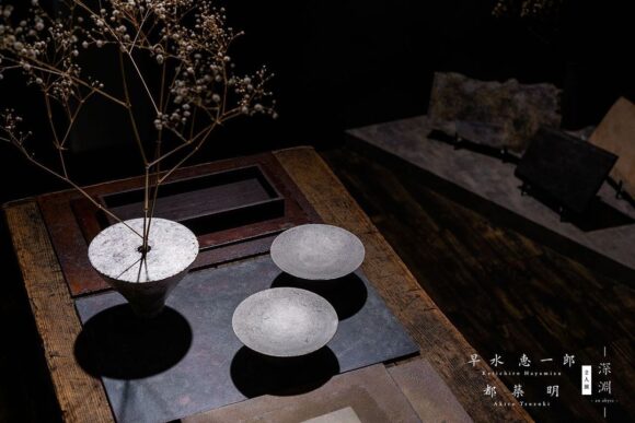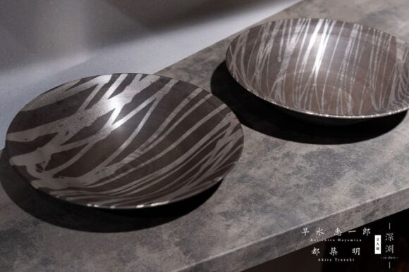 早水さんの作品にもアルミ蒔地や錫蒔地などの金属系の色味のものがございますので、とても相性も良いです。