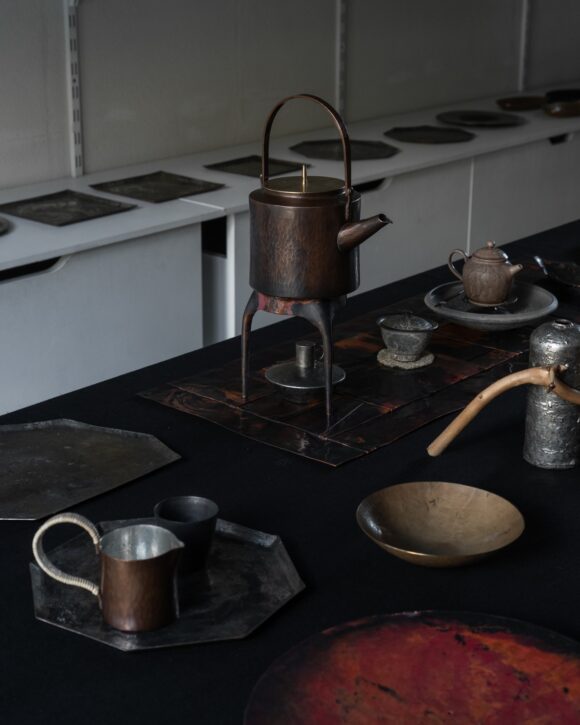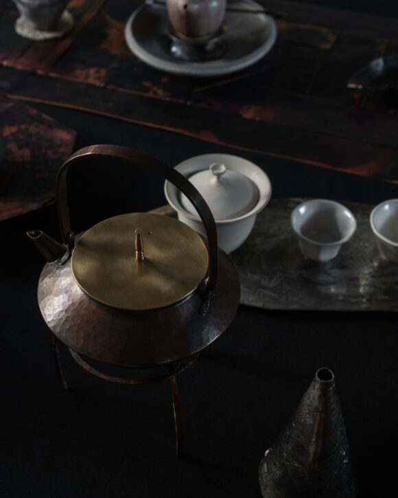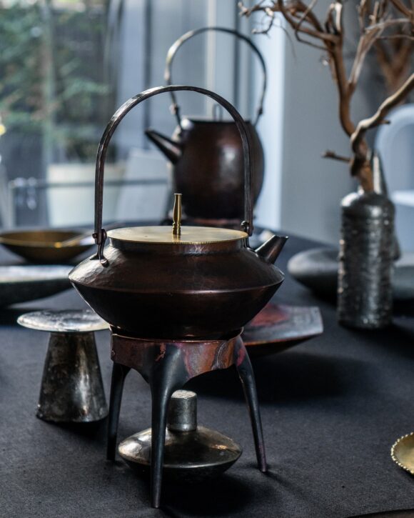銅・真鍮・錫。素材ごとに異なる温度と表情があり、光を受けて静かに揺らぐ質感が、空間に深さを与えてくれます。