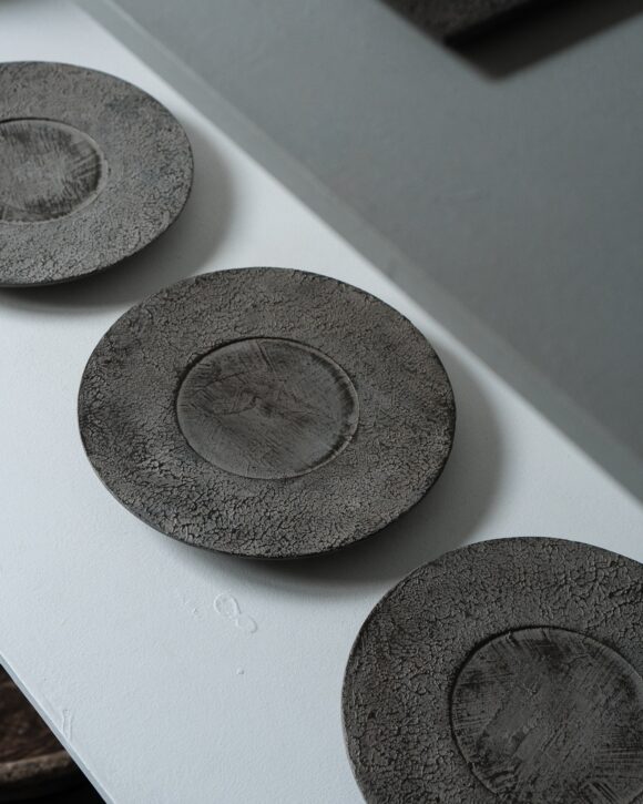 銀のような少し青みを感じる灰色の白漆で、幅広のリムが船木さんらしい造形です。