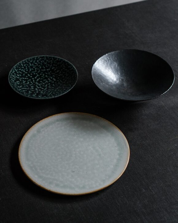 田代さんは、シャープなラインと構築的なフォルムを大切にしながら、静かな緊張感を宿すうつわを手がけています。