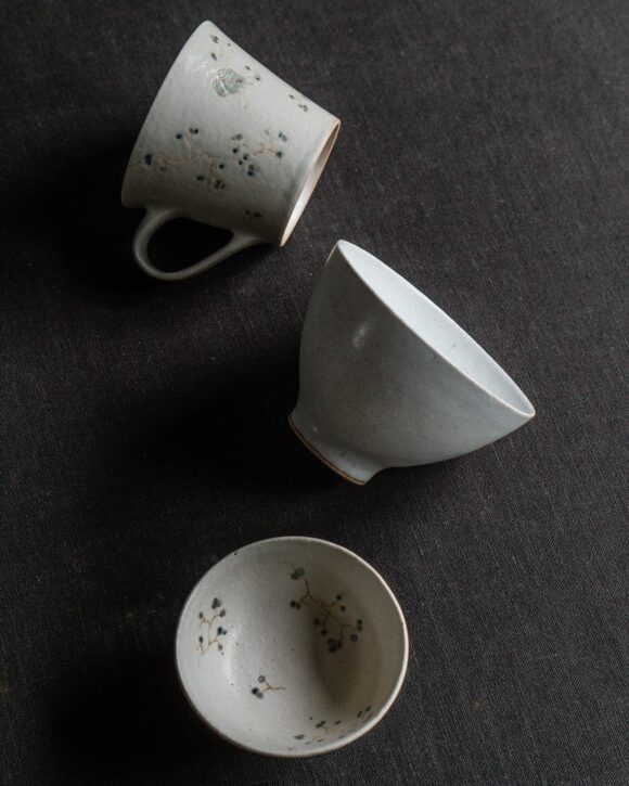 鈴木さんは、釉薬の柔らかさと奥行きを追求し、光の差すような繊細な表情を生み出しています。