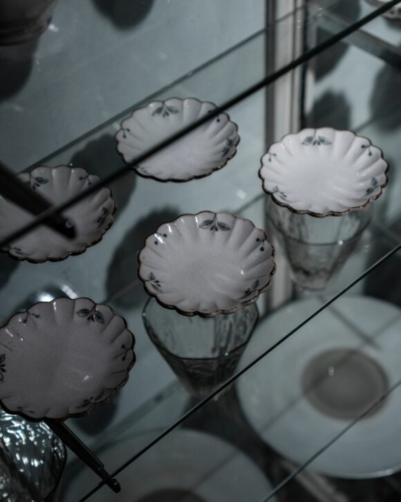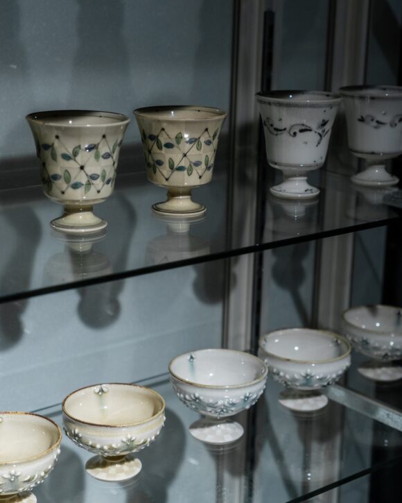 古典柄の軽やかさに加え、今回は色絵の作品も多く、筆の運びから生まれる線の表情がいっそう豊かに広がっています。