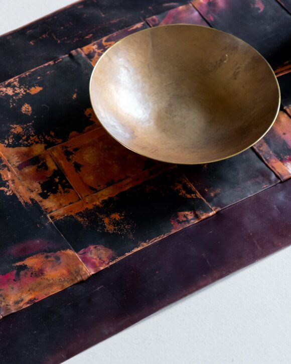 藤田さんは、銅、真鍮、錫、鉄——それぞれの素材が持つ特性を見極めながら、金属の質感を引き出し作品を作られています。