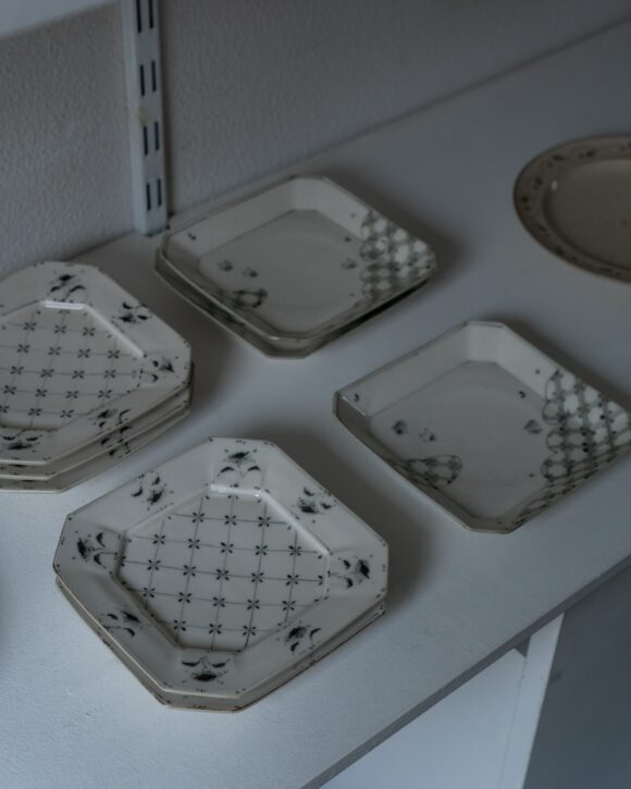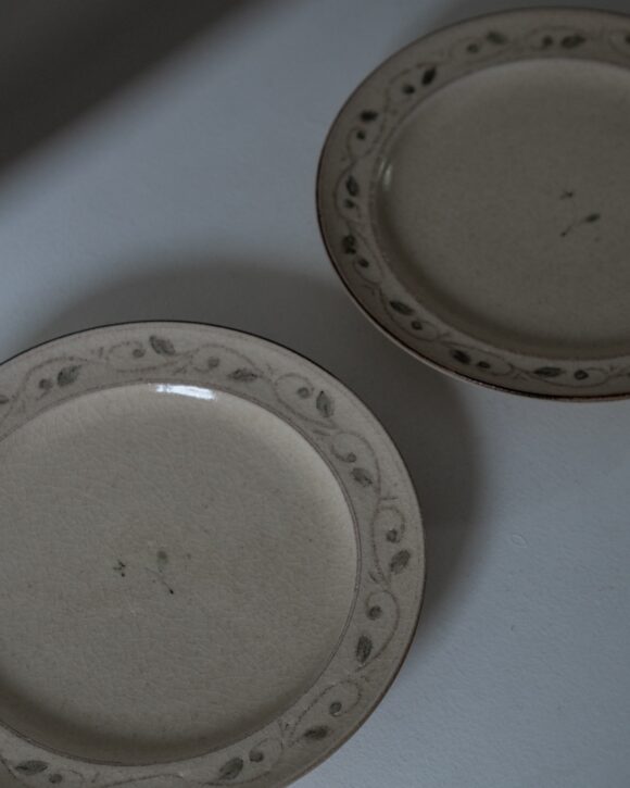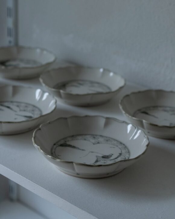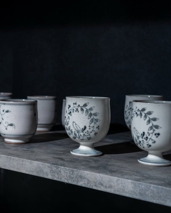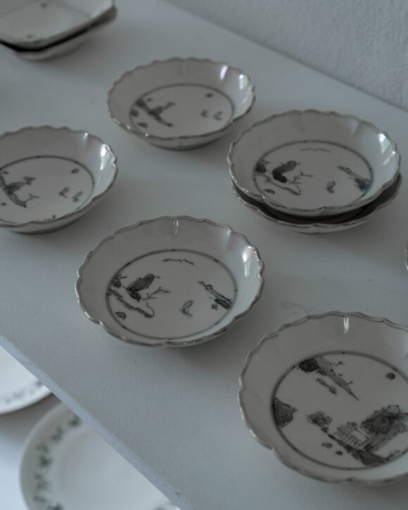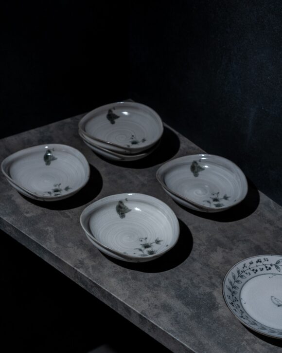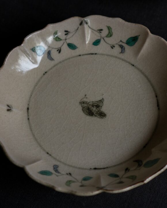 青地と黄地、それぞれの素地ににじみを含んだ絵付けが施され、安南らしさを感じさせつつも、古典に寄りすぎない軽やかさがあります。