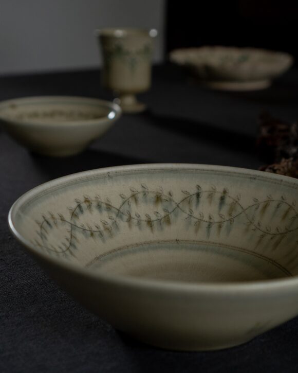柔らかな黄の発色に、安南らしい線や装飾が重なり、呉須の青とはまた少し異なる佇まいです。