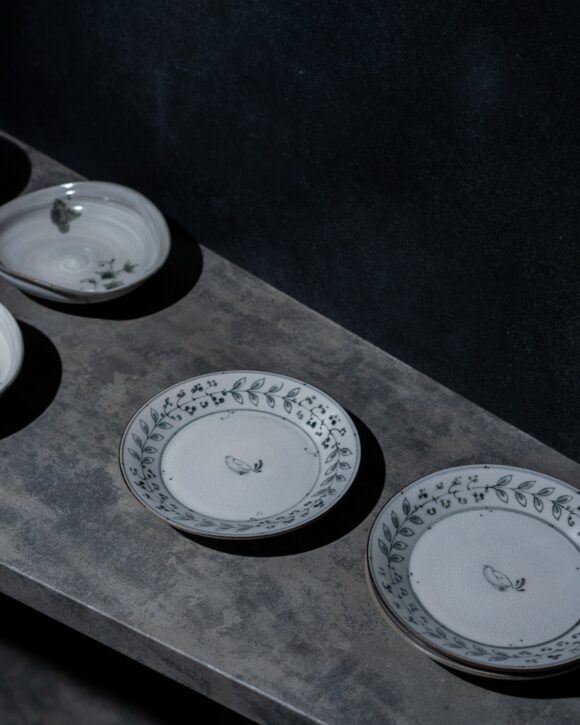 呉須絵の仕事に加えて、写真にある黄の色絵も、ゴブレット以外の器まで幅広く届いています。