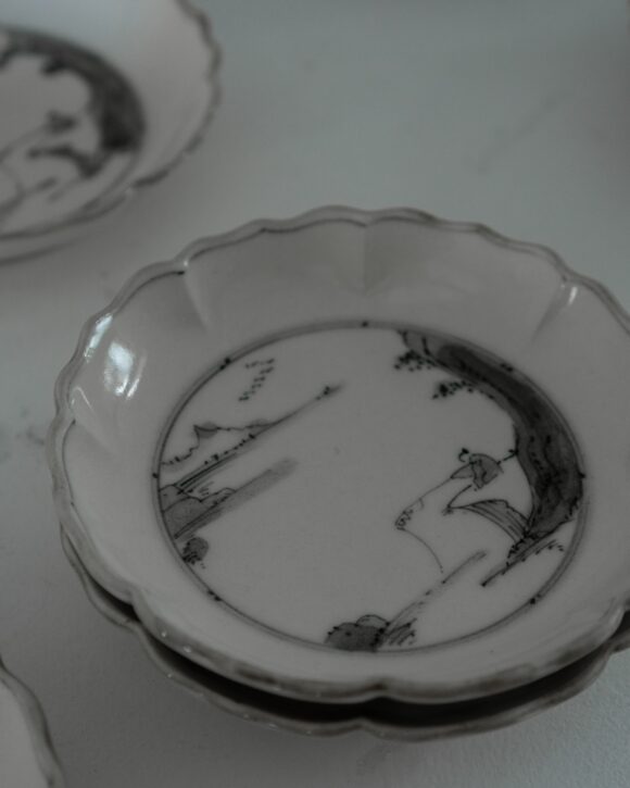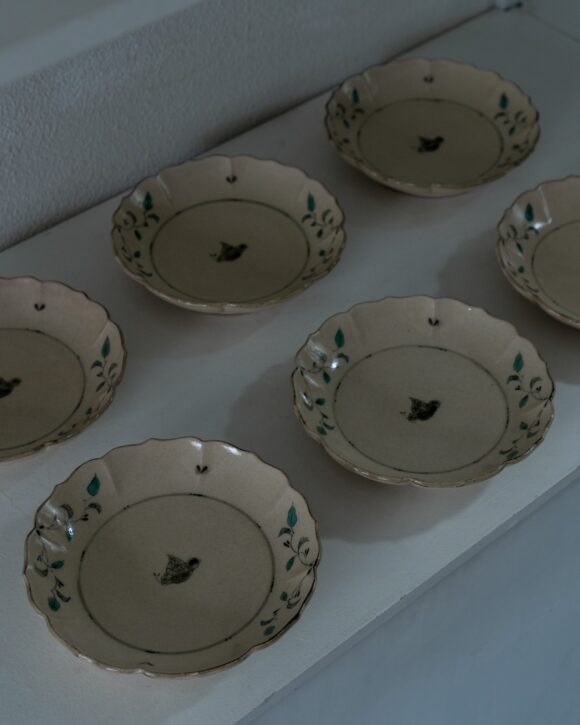 呉須絵の仕事に加えて、写真にある黄の色絵も、ゴブレット以外の器まで幅広く届いています。
