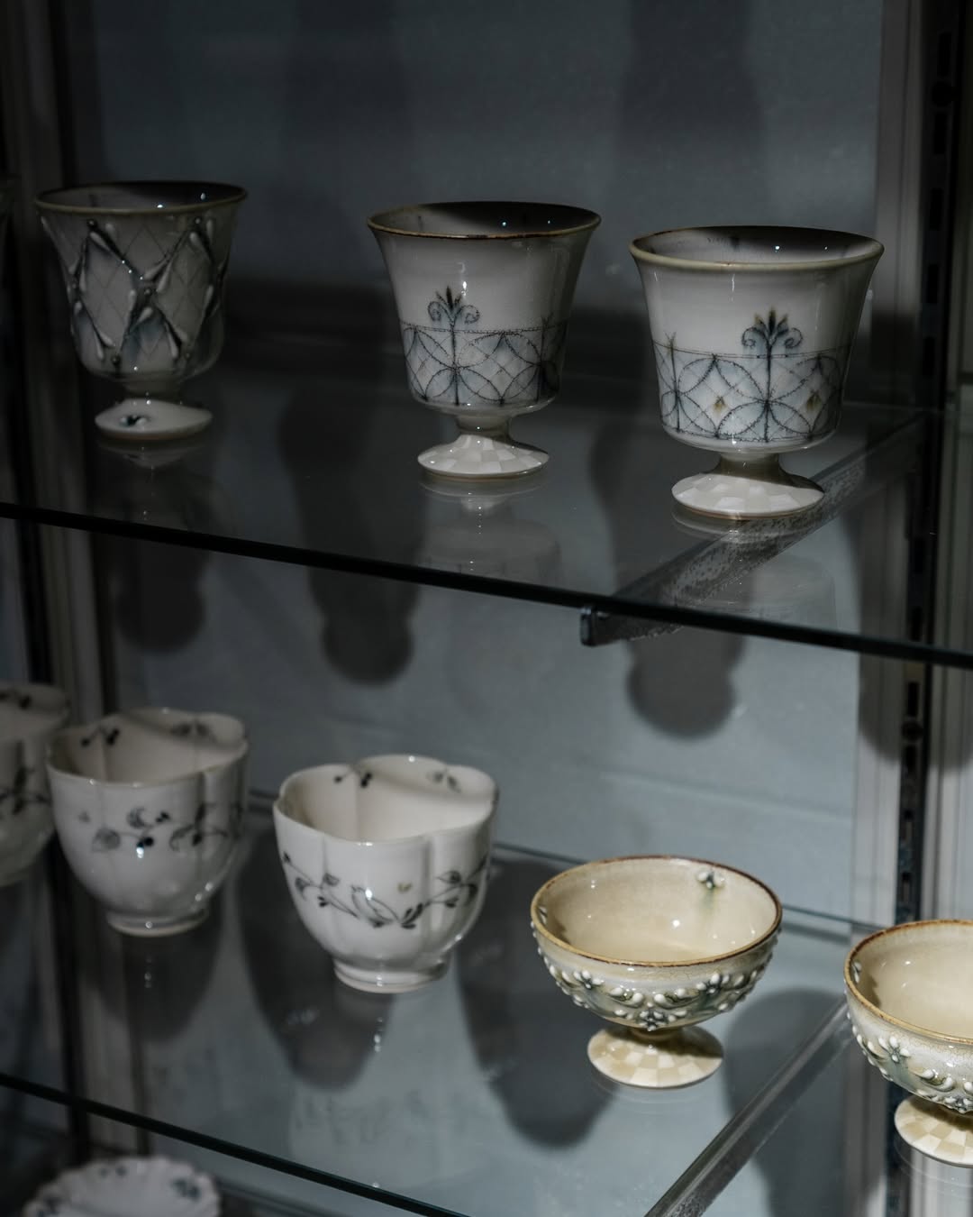 ガラス素材そのもののの美しさを静かに引き出しながら、うつわやオブジェに独自の表情を与えています。