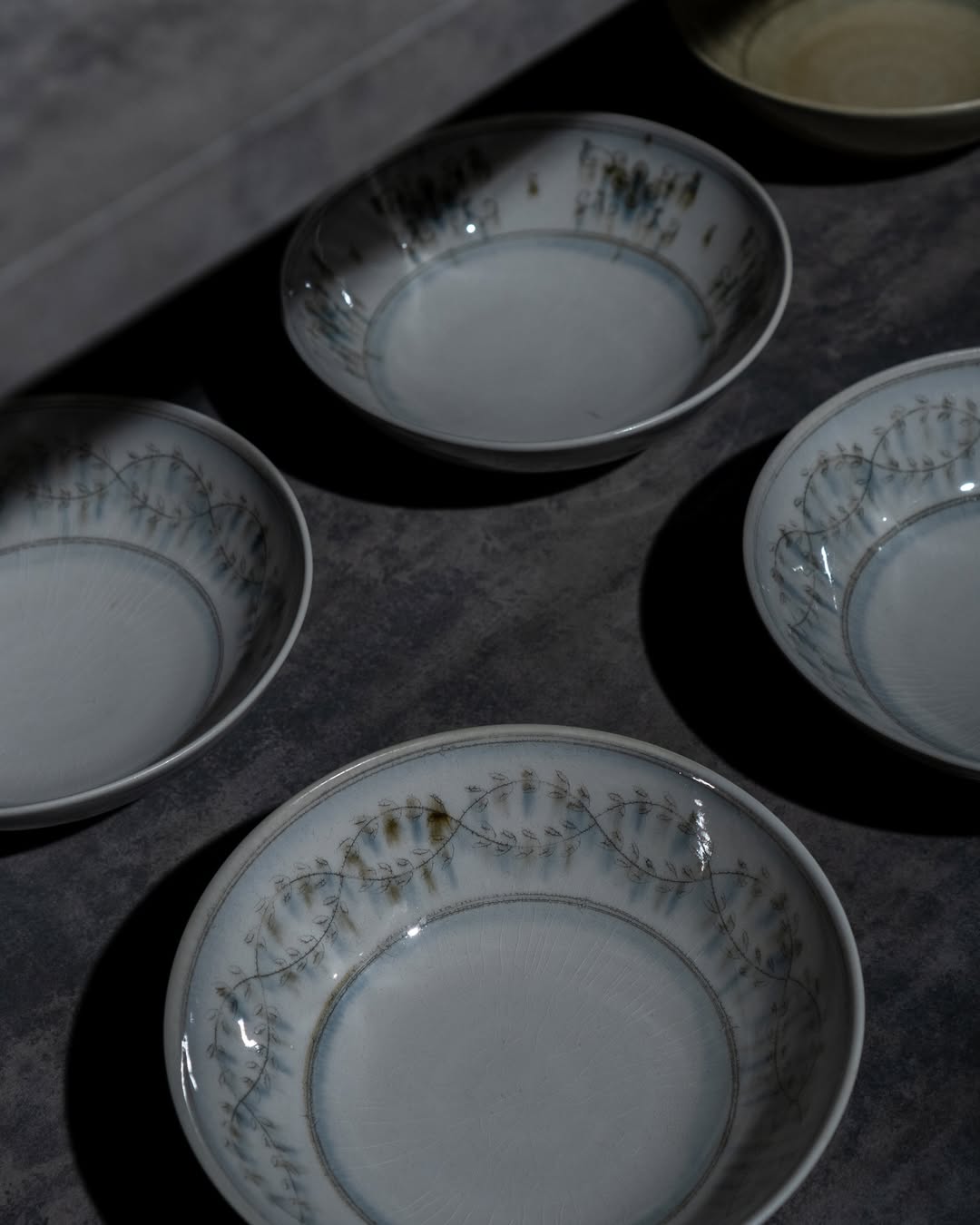 ロクロ成形による陶器のうつわを中心に、やわらかな「白」、硬質で凛とした「黒」、鈍く光る「銀」、そして細やかな貫入が美しい「薄銀」と、質感の異なる作品を手がけています。