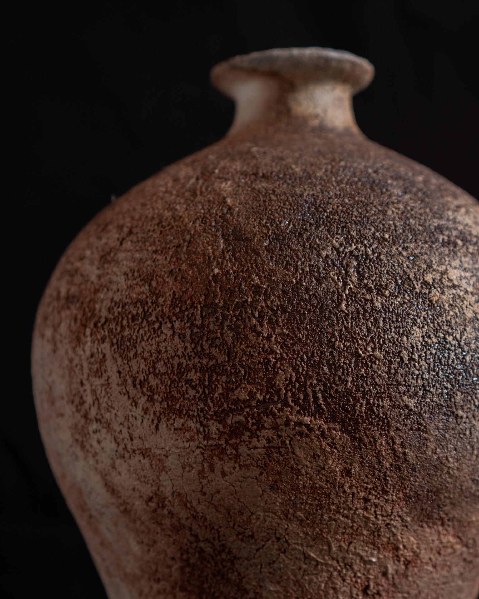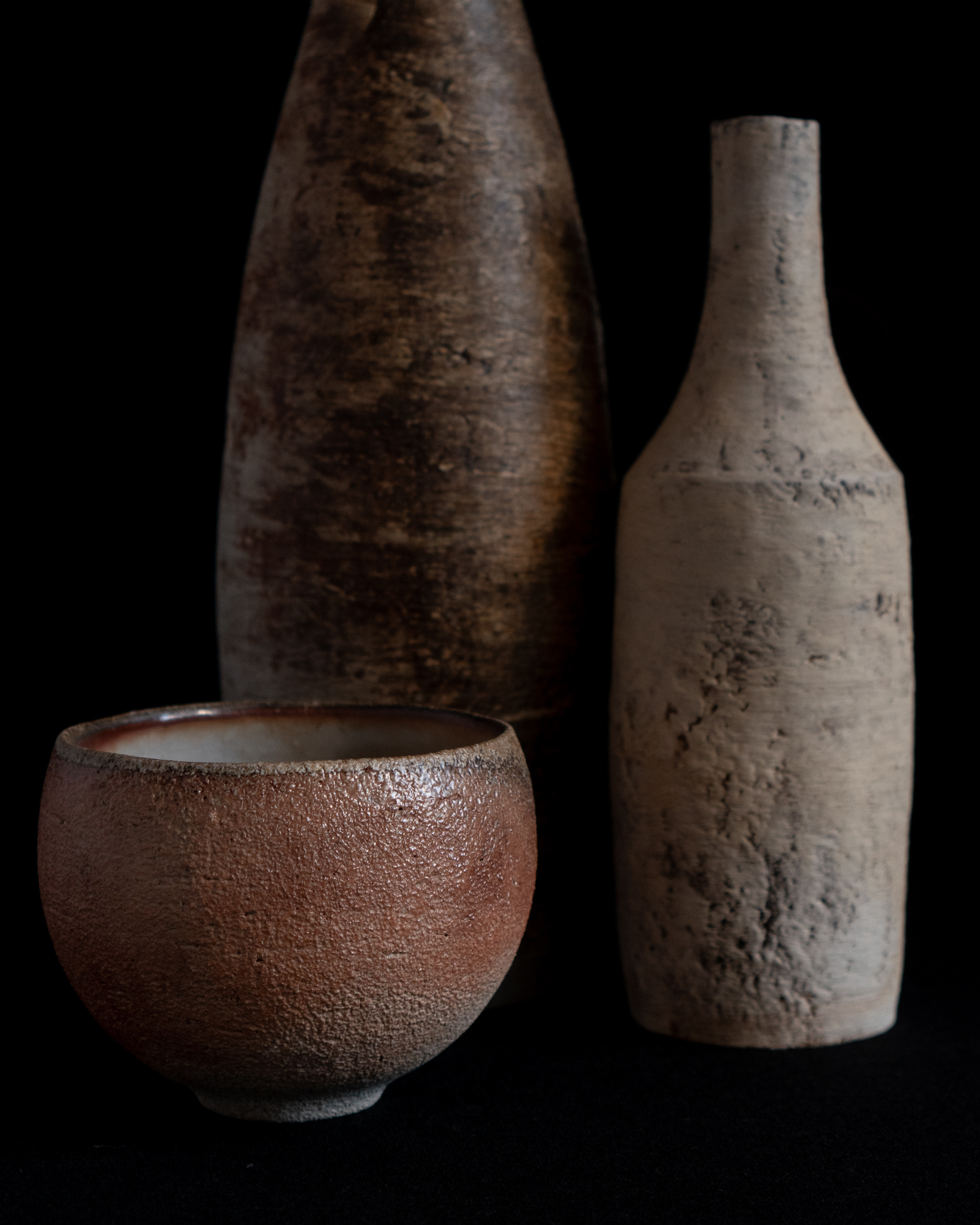 ひとつひとつの作品が、土・火・灰という要素を巡りながら、再び炎の中へ戻っていく。自然のエネルギーを感じさせる力強さと、素材や工程に向き合う静かな視線。