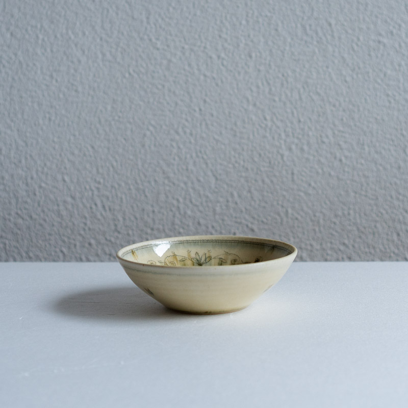 福田栄一 黄安南絞り手筒描 フラットプレート 12cm