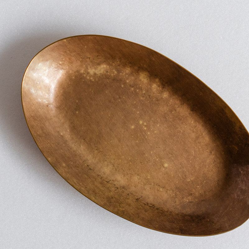 主に銅、真鍮、錫などを使った作品は、フォルムや加工方法、テクスチャーなど細部までこだわり抜いた、一つ一つ時間をかけて作られた世界観のあるうつわです。