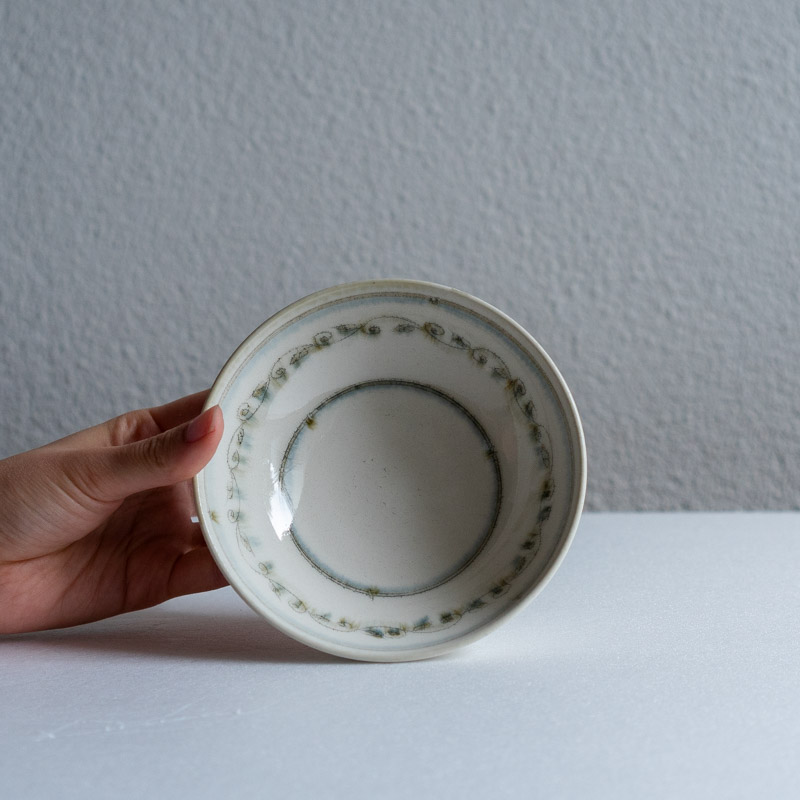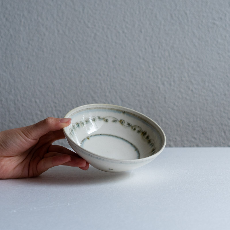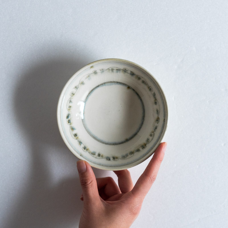 古典柄の軽やかさに加え、今回は色絵の作品も多く、筆の運びから生まれる線の表情がいっそう豊かに広がっています。