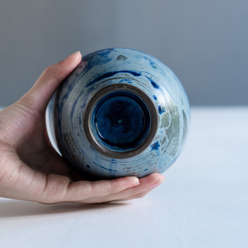 降幡さんは自然の風景から着想を得て、釉薬の重なりによる奥行きある色彩を表現しています。