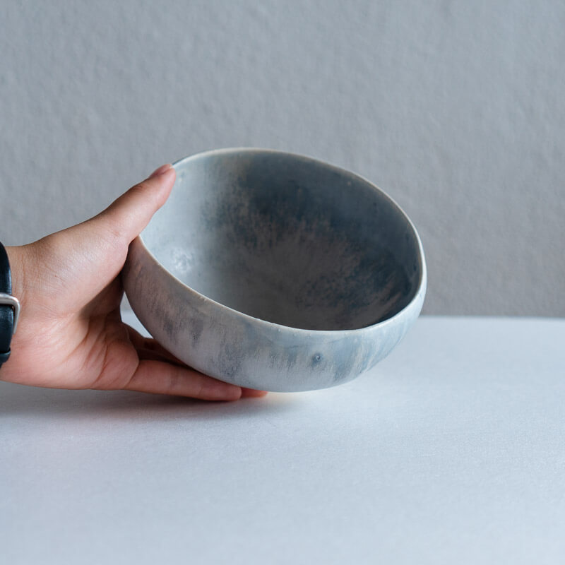 大久保さんはグレーやベージュを基調とした淡く美しい色調のうつわを作られています。
