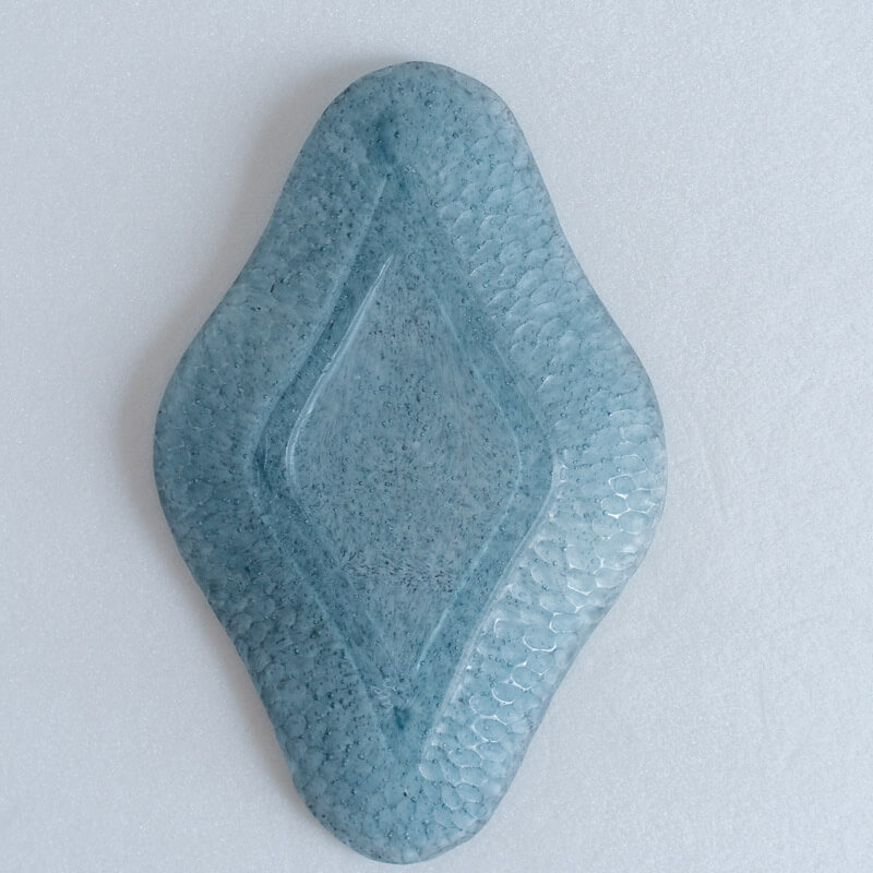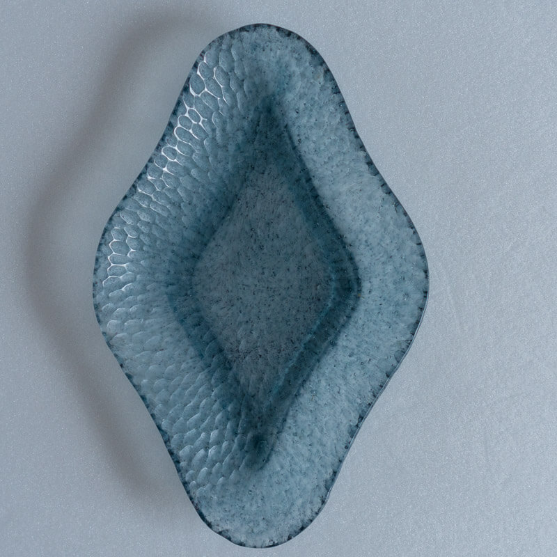 とても非効率な技法ですが、多層的な色味や細かな気泡などがガラスの中に閉じ込められた作品からは、