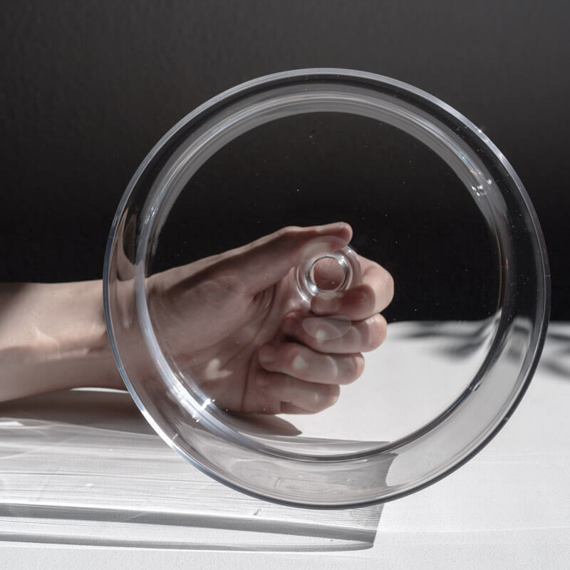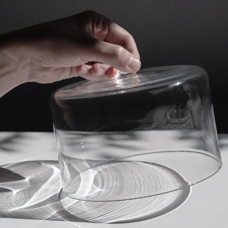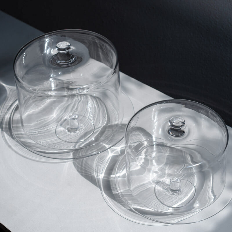 吹きガラスらしい有機的でやわらかさとモダンでシャープな雰囲気を兼ね備えた印象的なうつわを作られています。