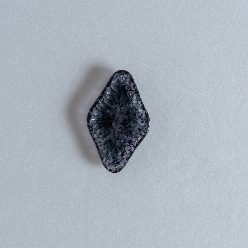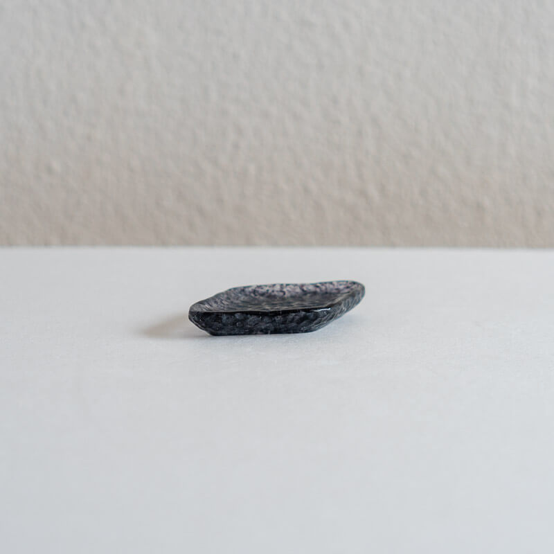 ミウラさんのガラスは落ち着いた色合いと細やかな気泡が、光を受けて積層した色が淡く揺らぎます。