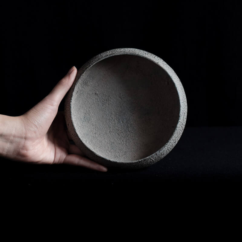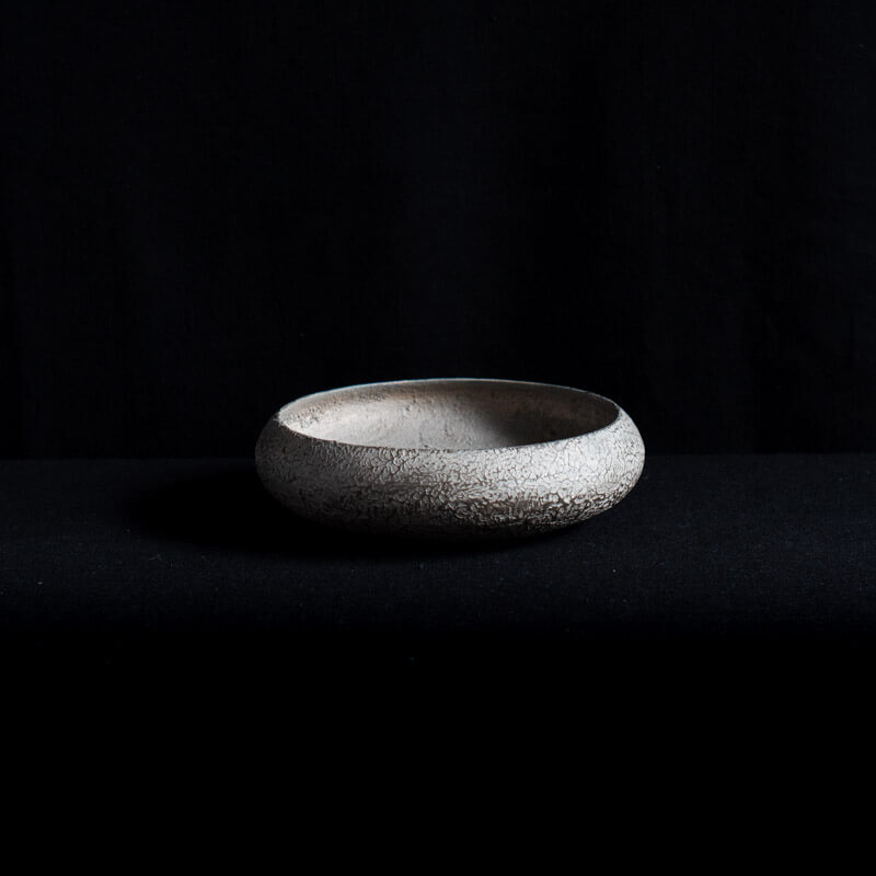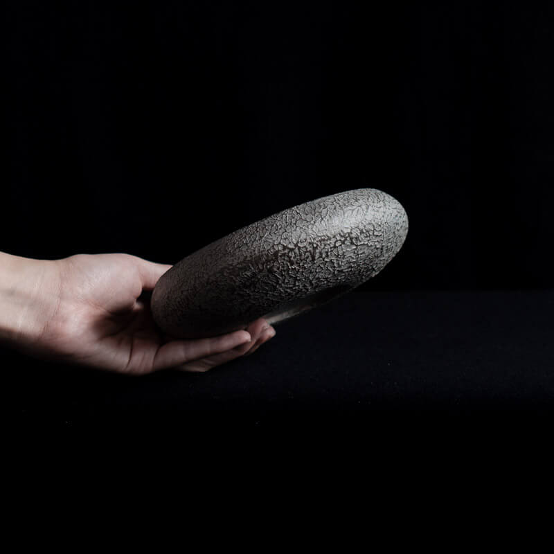 『陰陽』をコンセプトに、木工とは思えない程の非常に精巧なフォルムを削り出し、木地に漆を塗り砥粉を付着させる「蒔地漆」という技法を用いて立体感のある質感に仕上げられています。