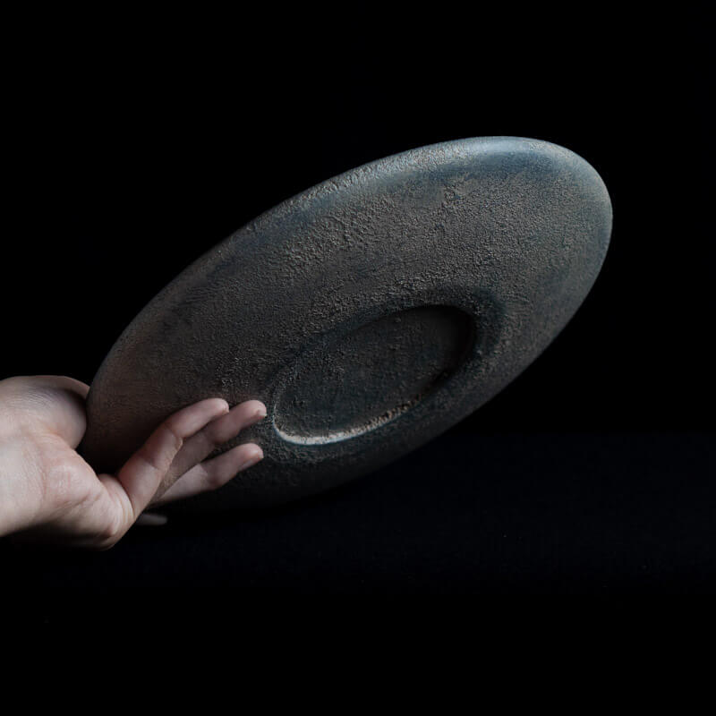 『陰陽』をコンセプトに、木工とは思えない程の非常に精巧なフォルムを削り出し、木地に漆を塗り砥粉を付着させる「蒔地漆」という技法を用いて立体感のある質感に仕上げられています。