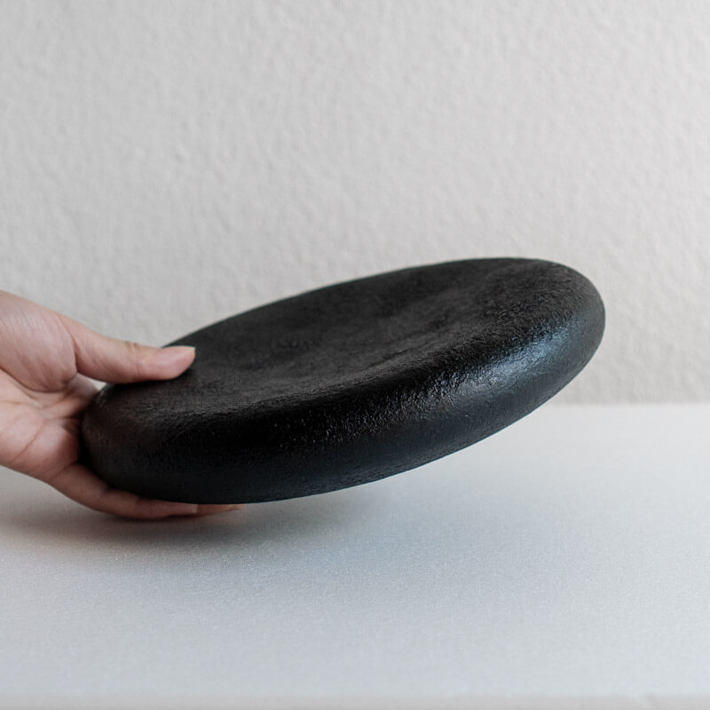 彫刻のような重厚感のある色とフォルムに対しての驚きの軽さをご体験いただきたいです。