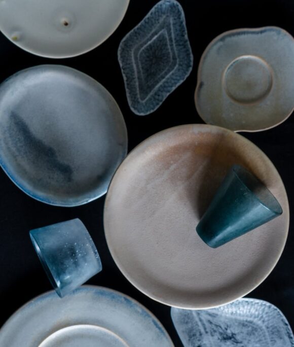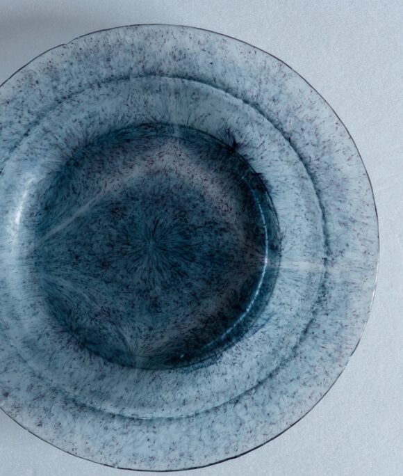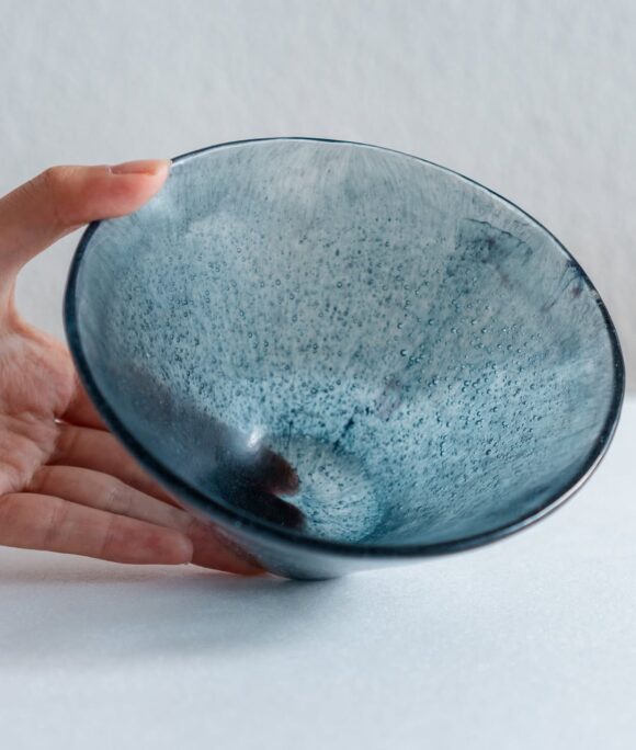 落ち着いた色味に細やかな気泡が浮かび、光を受けて淡く揺らぐ作品が生まれます。